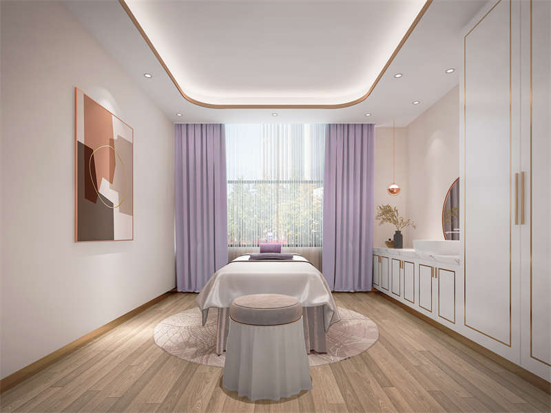 美容間,淡雅的色調(diào)與大面積留白,在視覺上體現(xiàn)出一種引導(dǎo)性和動(dòng)感的體驗(yàn),頗有動(dòng)靜怡然的空間氣氛。